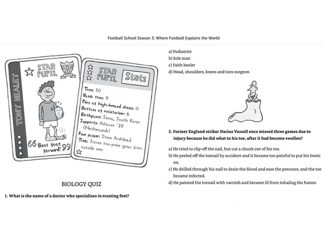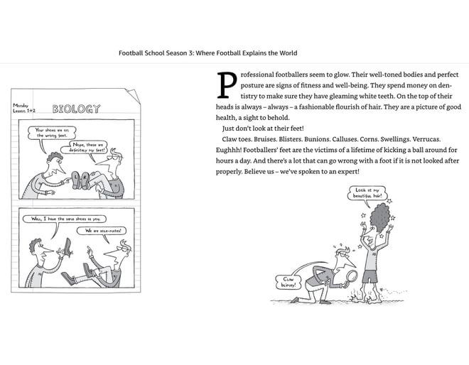 This entertaining 170 page guide has chapters on subjects such as History, Geography and Maths, with every lesson all about football, of course! Physics explains why shorter players dribble better, Fashion considers club shirts and how they got them and Politics looks at football derbies. What is Ronaldo's sleep routine? Which player speaks eight languages? Find the answers to these questions and more, illustrated throughout with hilarious cartoons and filled with laugh out loud jokes. The perfect book for anybody who loves football - like Horrible Histories for the footie-mad!