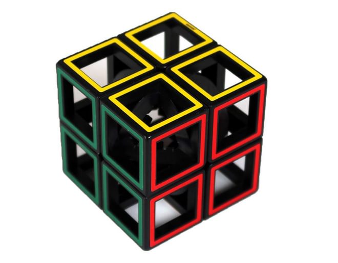 Brain-teasing twisty 2X2 puzzle cube with hollow pieces.