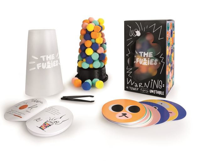 Perfect for two or more players, this quick game of balance combines little pompom balls with gravity-defying towers! Simply remove a fluffy Fuzzy ball from the tower and place it anywhere higher up on the stack, which will rapidly start to change shape. If any Fuzzies drop, take a forfeit card - then you may have to use your non-dominant hand or even close one eye when playing next. But don't topple the tower, then you lose!