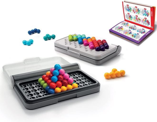 Using combinations of coloured connected balls, the challenge is to complete the constructed designs from the enclosed booklet. Split into levels of difficulty from easy to expert, the 120 challenges get harder as you need to fill in more missing pieces, moving from the tricky 2D puzzles to cunning twisted 3D pyramids. Suitable for any age from 6 to 'very wise' - build that genius IQ!