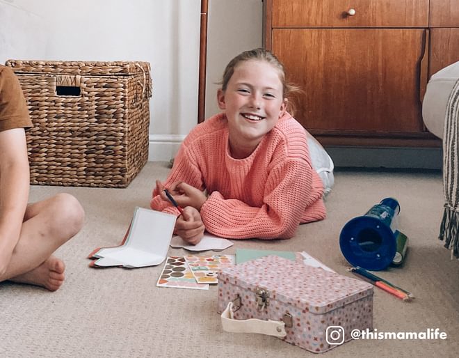 Write notes to your loved ones with this sweet DIY stationery set. Follow the illustrated instructions to fold your letters into twelve cute animal cards, including a sleepy turquoise owl, cute panda bear and cheeky red fox. Then customize to your hearts desire with 56 stickers and four fun double sided pencils. With a pretty storage tin and a 14cm x 19cm hardcover notebook for you to keep, this truly lovely set is great for any little writer!